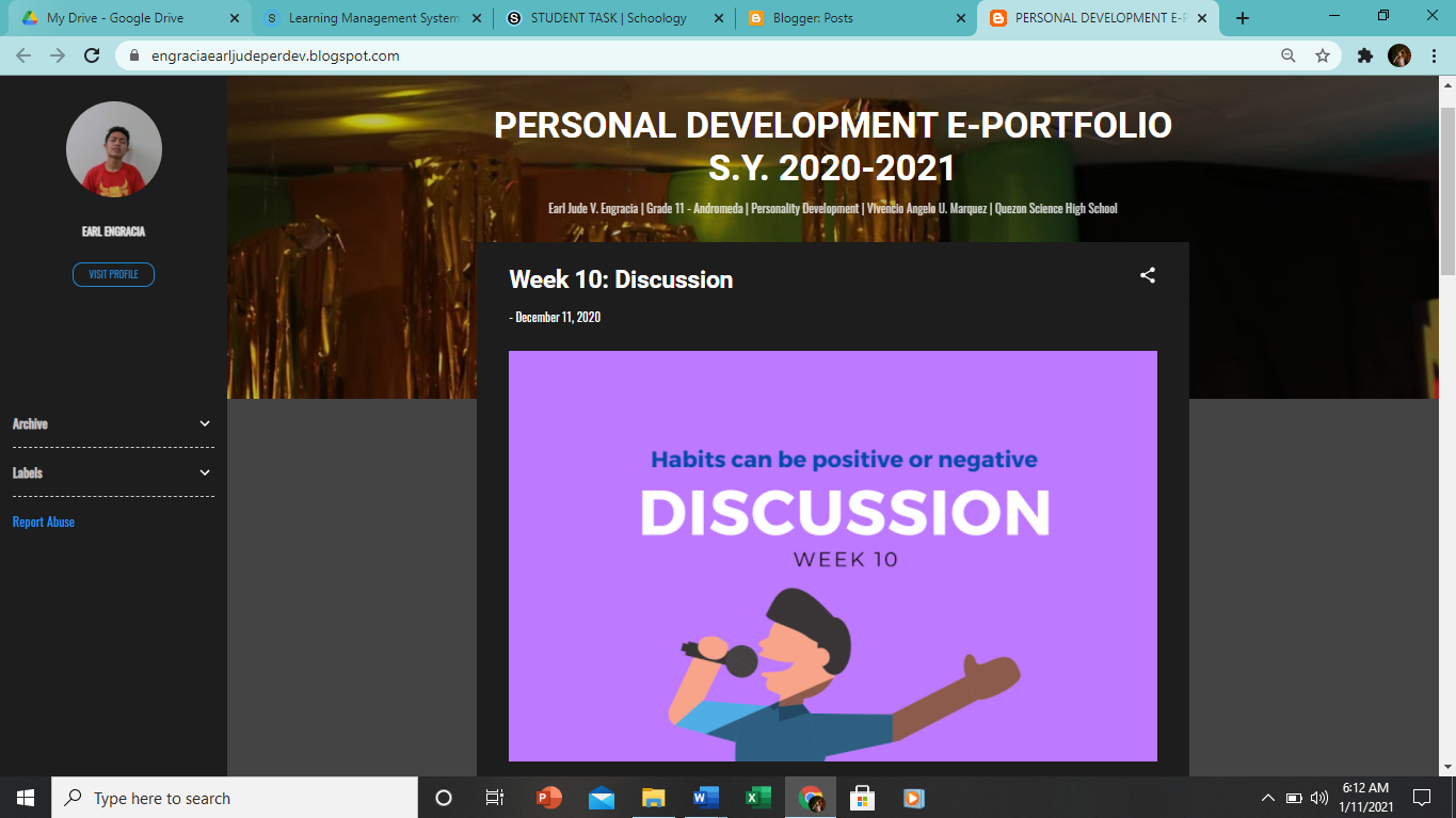The picture above shows my blog in Personal Development. All of my outputs and grades in this subject are in here.